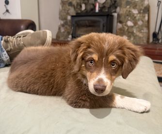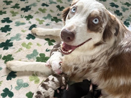 ✨ She’s a striking red merle Australian Shepherd with piercing blue eyes that catch everyone’s attention. Full of personality, she’s playful, confident, and always keeps life interesting—yet underneath it all, she’s incredibly sweet and loving. She has the biggest smile you’ve ever seen. I’m