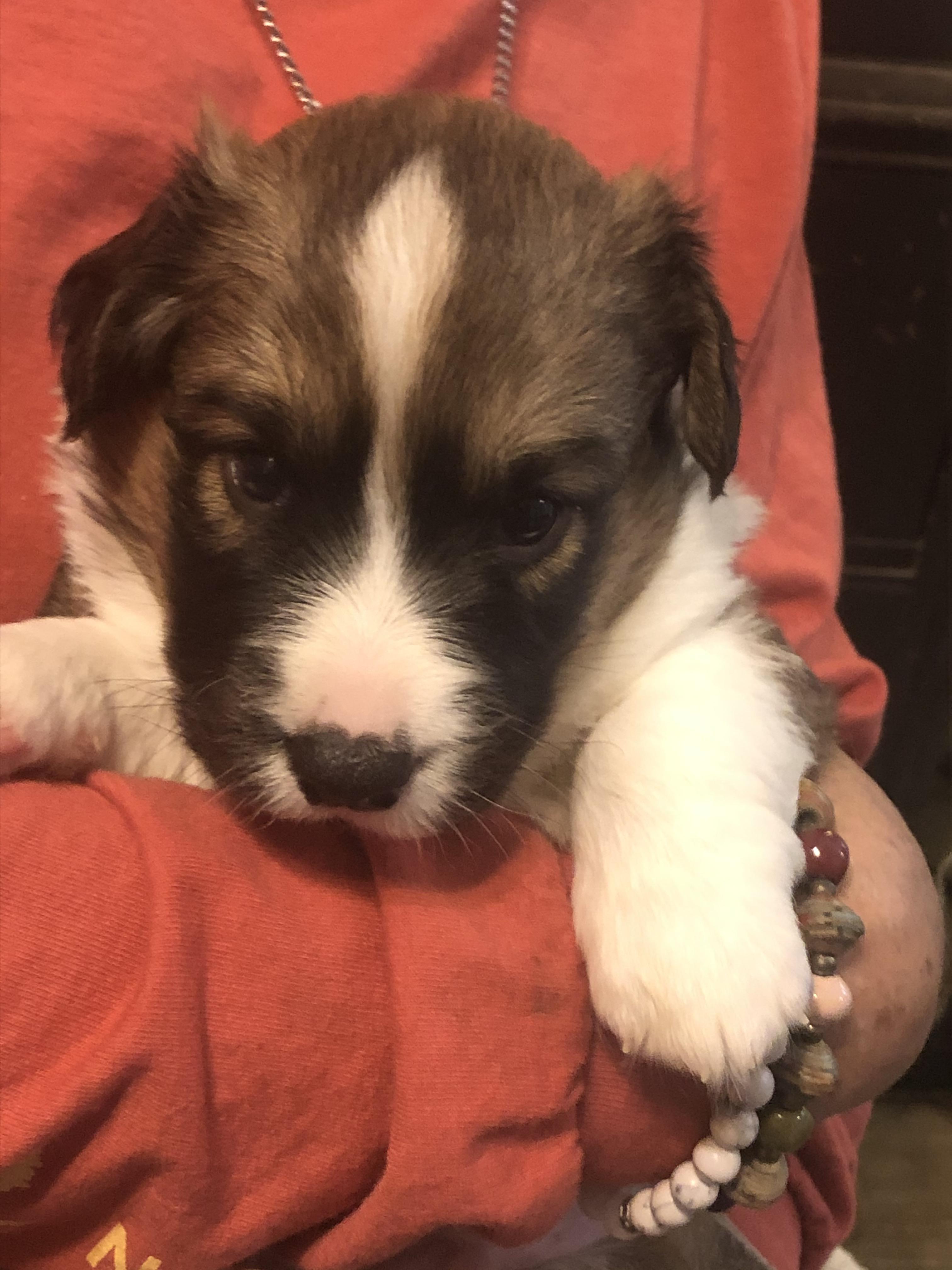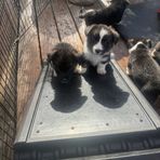 Our Cardigan Welsh Corgi puppies include sable and white, red and white, brindle and white, blue merle and white, and black and white. Colors will vary depending on the parent dogs.