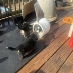 Regina and Kopono's puppies are 7 weeks old. They are bright and perky and playing in the playpen on the deck!