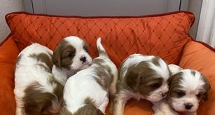 Our puppies are blenheim. Colors will vary depending on the parent dogs.