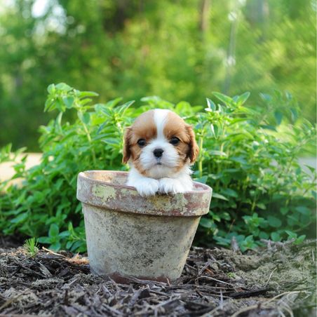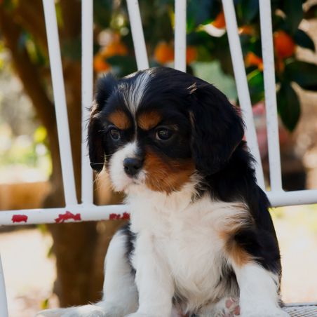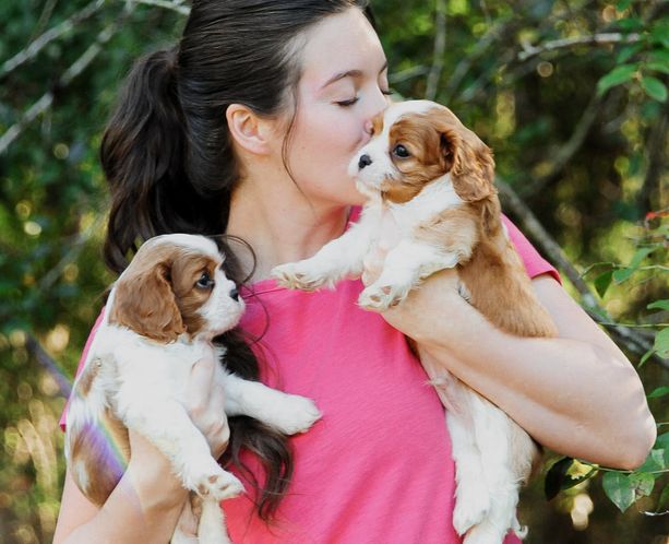 Our puppies include blenheim and tri-color. Colors will vary depending on the parent dogs.