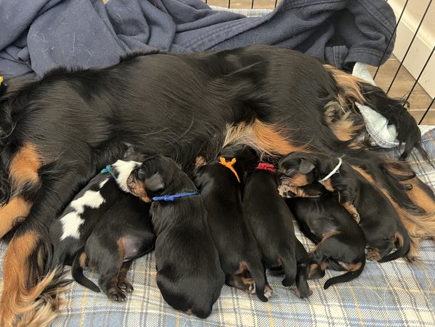 Our puppies include tri-color and black and tan. Colors will vary depending on the parent dogs.