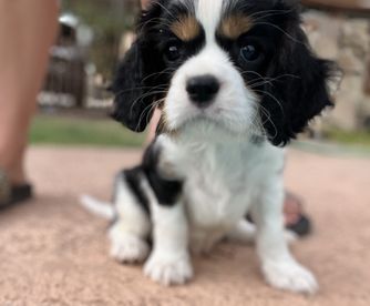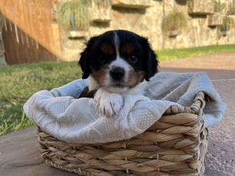Our puppies include blenheim, tri-color, black and white, and black and tan. Colors will vary depending on the parent dogs.