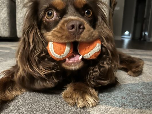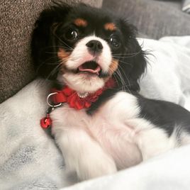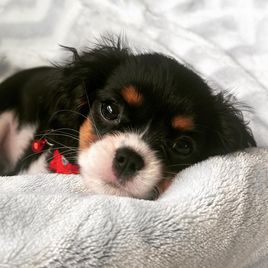 Inky is a female Cavalier King Charles Spaniel. Carefully selected as a great representative of her breed, Jenny decided to make her part of their program. Jenny has passed Good Dog’s screening process, which involved a review of their breeding practices, environment, and the mental and physical health of their dogs.