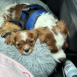 Lacy is a female Cavalier King Charles Spaniel. Carefully selected as a great representative of her breed, Jenny decided to make her part of their program. Jenny has passed Good Dog’s screening process, which involved a review of their breeding practices, environment, and the mental and physical health of their dogs.