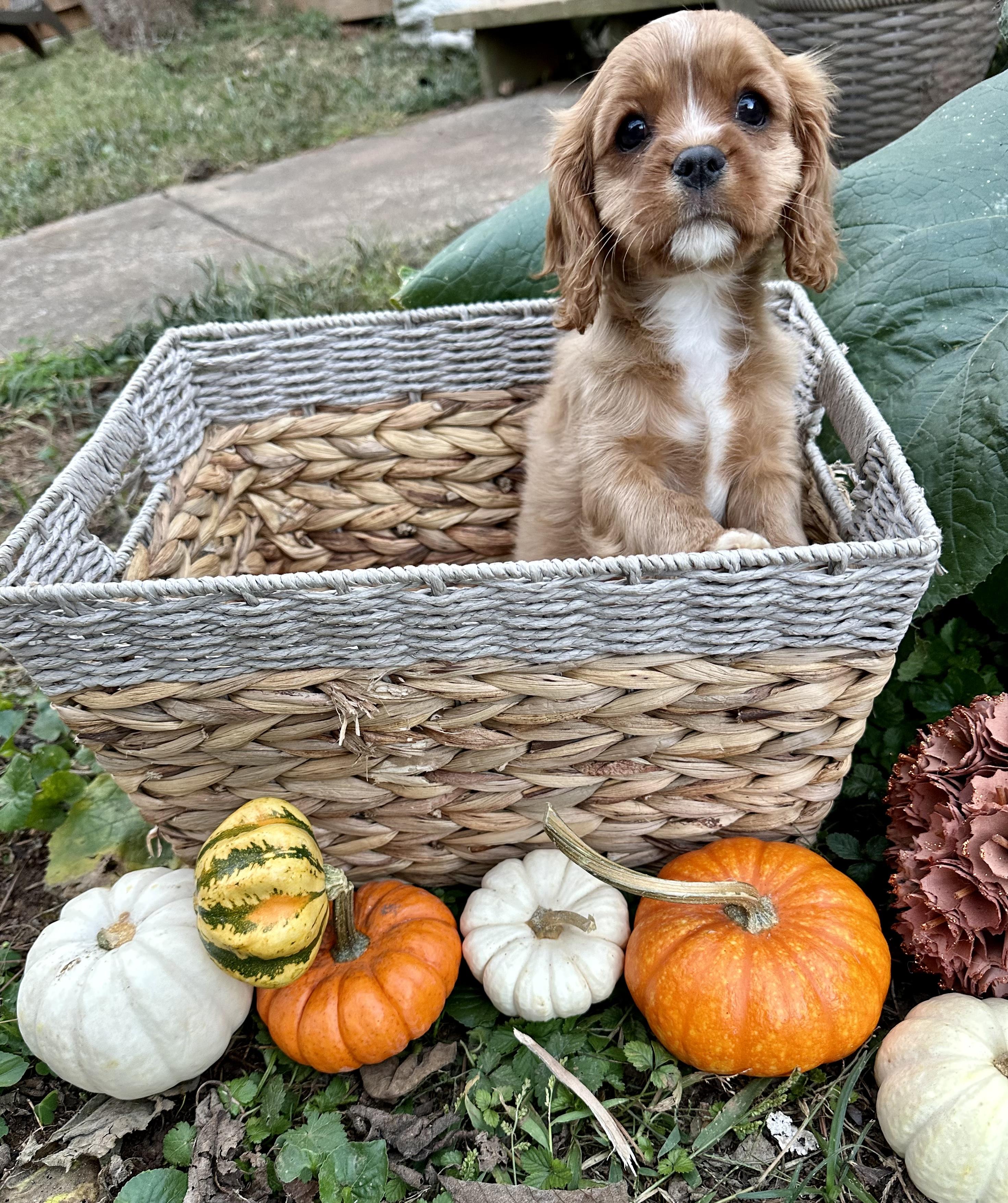 Our puppies include blenheim, ruby, and black and tan. Colors will vary depending on the parent dogs.