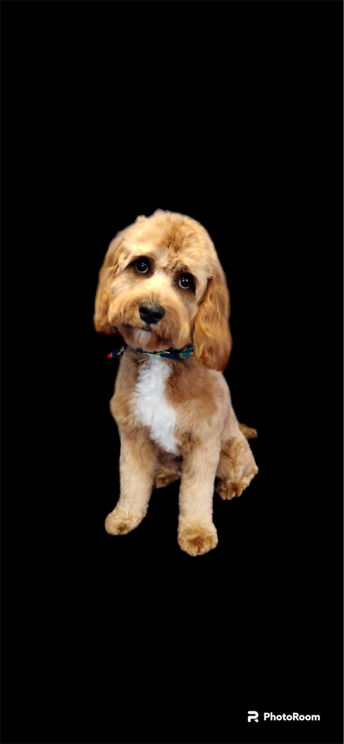 Gorgeous male. Was born with more of a red coat but has grown to an apricot with cream highlights. He is a sweet boy who has an amazing disposition, is loyal and still so playful. His parents were a king cavalier spaniel and standard poodle.