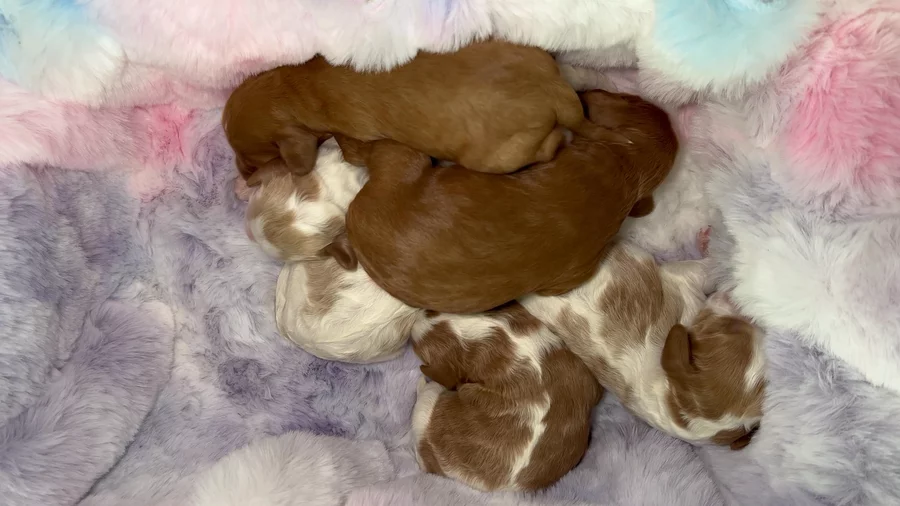 "Each Cavapoo comes with age appropriate vet care and vaccines, starter essentials, daily cuddles, socialization, and lifelong support—raised in our home and ready to bring joy to yours. To reserve your Cavapoo LoveBug, we require a non-refundable deposit. This ensures your place in line and reflects our commitment to raising each puppy with care and intention."