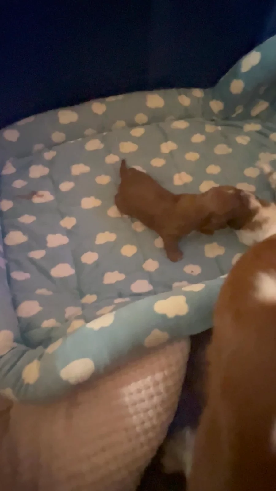 Happy New Year!! Here’s a quick update on Bella’s progress. Her recent vet check shows she is doing well and very healthy. Her stool sample shows no parasites so as with her last litter all puppies should be born with no parasites either! Yay!! She also had a puppy count x-ray that shows 4 puppies clearly, a 5th one not as clear. and there is always a potential for one to be hiding. Vet is pretty sure we will have a minimum of 5 precious puppies. We are preparing her welping area in our living room now that all of the holiday decorations have been put away and she is due in 8 days!!!! Stay tuned for birth announcement as the countdown begins!! 🐶🐾🐶🐾