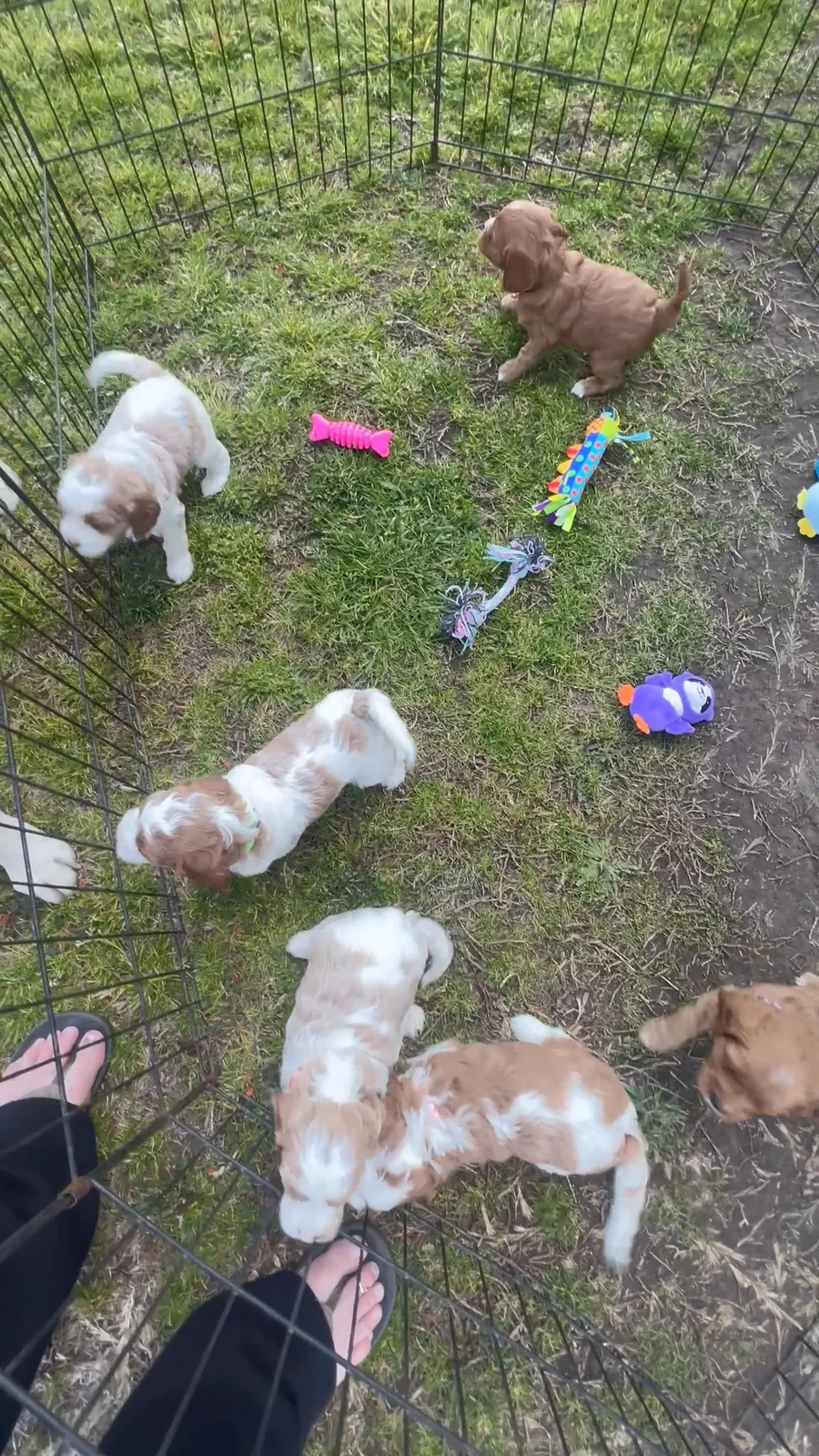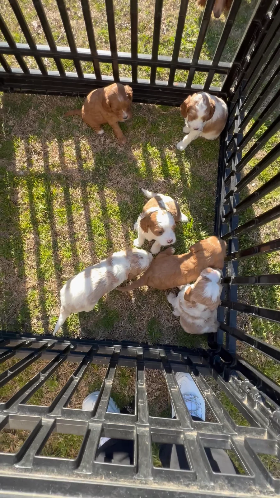 Warm Day Outside ☀️🐾 The sunshine finally showed off today, so the puppies got a whole 30 minutes of outdoor exploring. Not their first time out… but definitely their warmest and wiggliest. They sniffed every blade of grass, chased a few imaginary bugs, and took turns checking out Max — our patient outdoor dog who acts like the official “yard supervisor.” Six curious pups, one gentle big dog, and the first hint of spring… my heart needed this 💛🌱