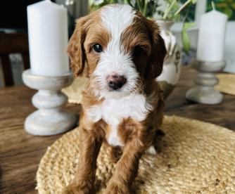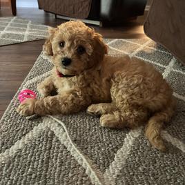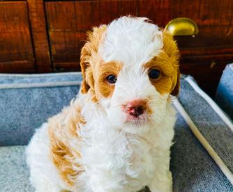 Maybelline is a female Cavapoo. Carefully selected as a great representative of her breed, Susie decided to make her part of their program. Susie has passed Good Dog’s screening process, which involved a review of their breeding practices, environment, and the mental and physical health of their dogs.