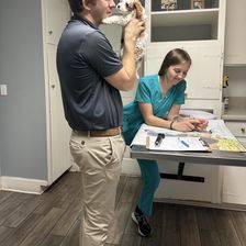 The puppies had a great first vet appointment today. They are all perfect. Their average weight is 4.5 lbs. fecal negative and no hernias. Not one peep out of any of them when they got their first vaccinations today.