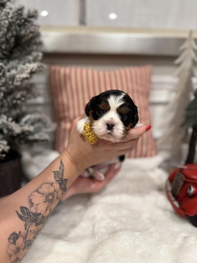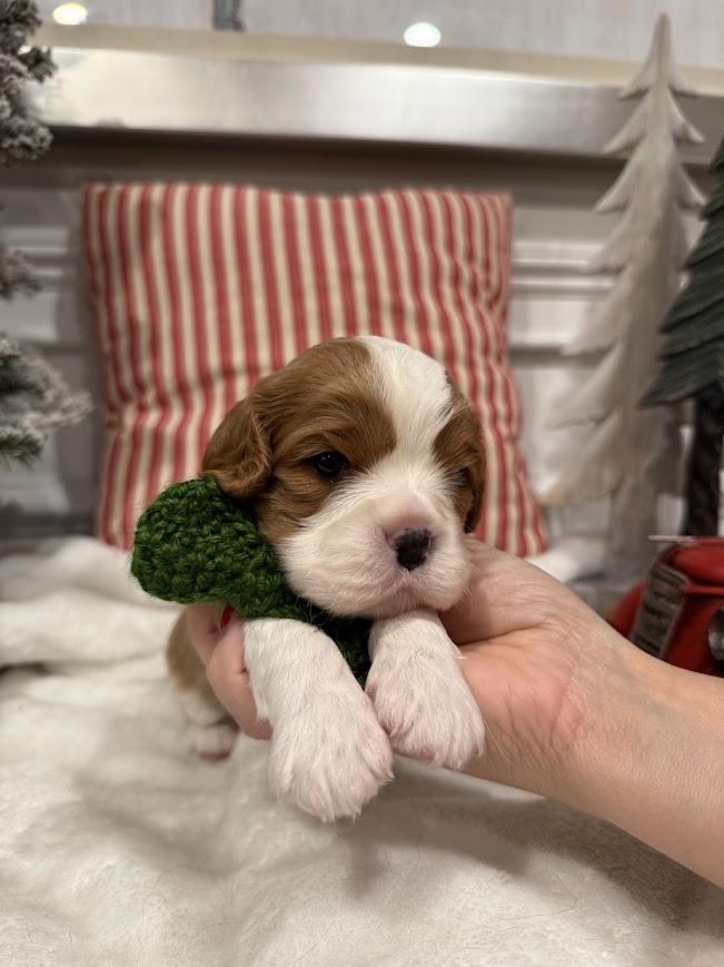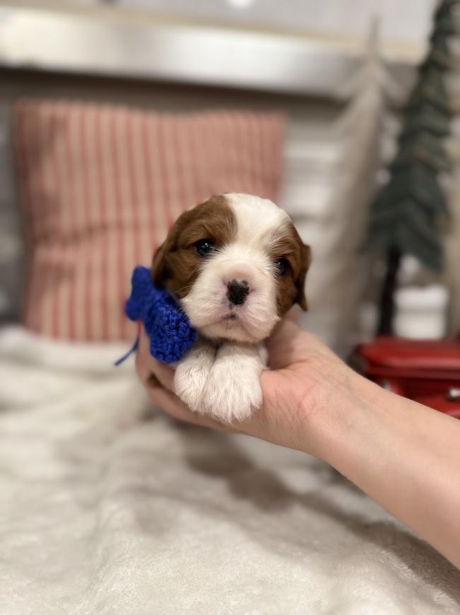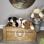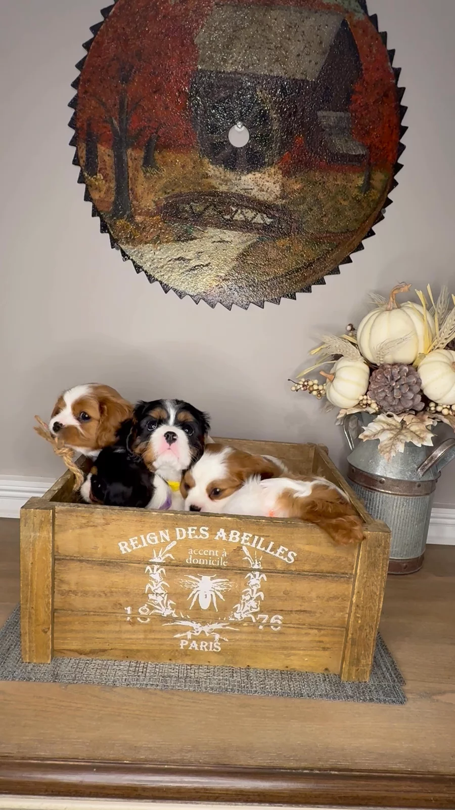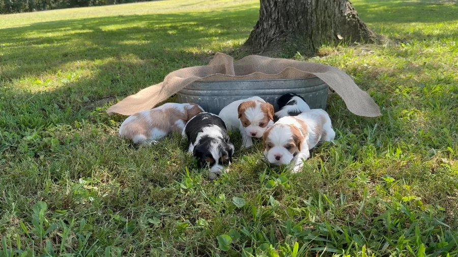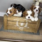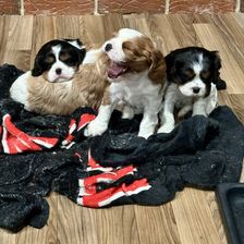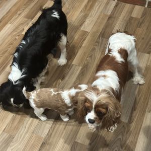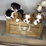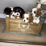 Our puppies include blenheim and tri-color. Colors will vary depending on the parent dogs.