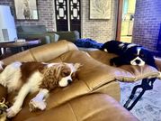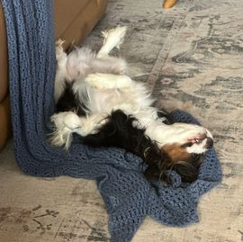 Cobra is a very affectionate Sire, he gives daily hugs to all his humans. He gets along well with every family member both human and animal. He has an inquisitive, energetic personality but also loves to nap in anyone's lap. He embraces the CKCS belief that strangers are only friends you haven't met yet.