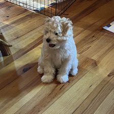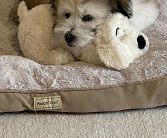 What a doll Carmel is! So smart, kennel trained and almost full potty trained! She is waiting patiently with hugs and kisses available!!