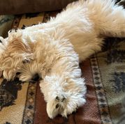 Just lounging around! Waiting for my new family. Dad Norman needs a haircut soon!!