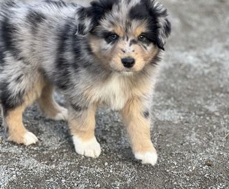 Our puppies include black, red merle, blue merle, and red. Colors will vary depending on the parent dogs.