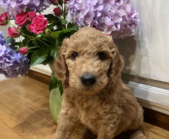 Our puppies include apricot and red. Colors will vary depending on the parent dogs.