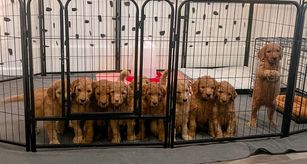 Our puppies are raised within our home and have their own designated space. Our puppies are raised following early neurological stimulation, early scent introduction, and 10 step handling. We practice introduction to crate training, potty training, and grooming.