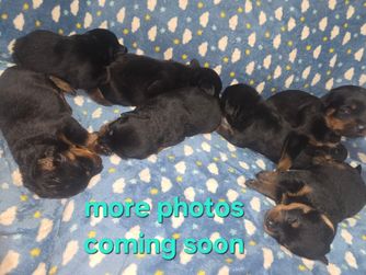 Our puppies include black and tan and black and mahogany. Colors will vary depending on the parent dogs.