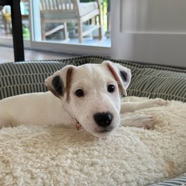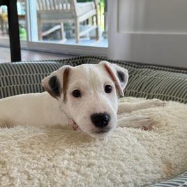 Huck is a male Jack Russell Terrier. Carefully selected as a great representative of his breed, Connie decided to make him part of their program. Connie has passed Good Dog’s screening process, which involved a review of their breeding practices, environment, and the mental and physical health of their dogs.