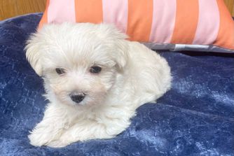Betty is a female Maltese. Carefully selected as a great representative of her breed, Amber decided to make her part of their program. Amber has passed Good Dog’s screening process, which involved a review of their breeding practices, environment, and the mental and physical health of their dogs.