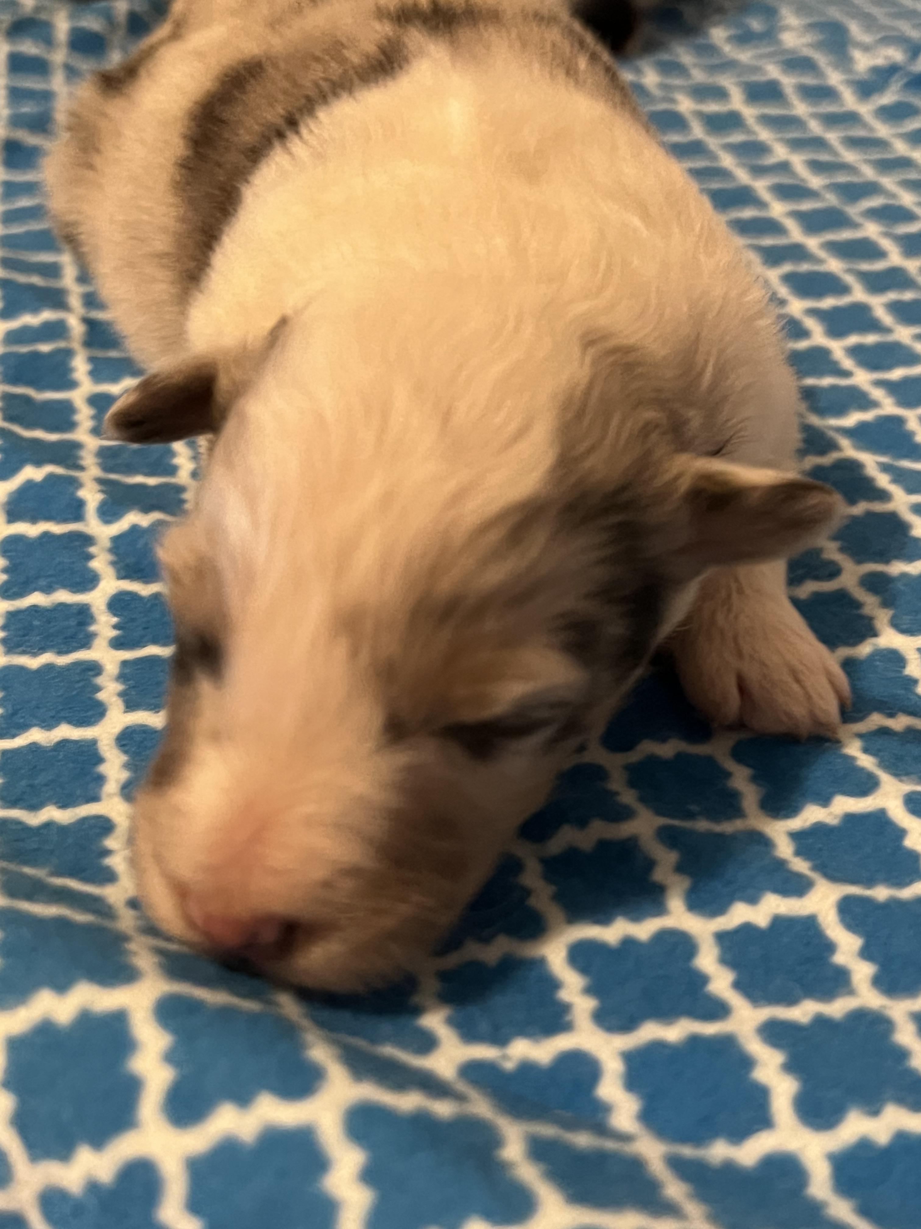 Beautiful Blue Merle ice blue eyes.