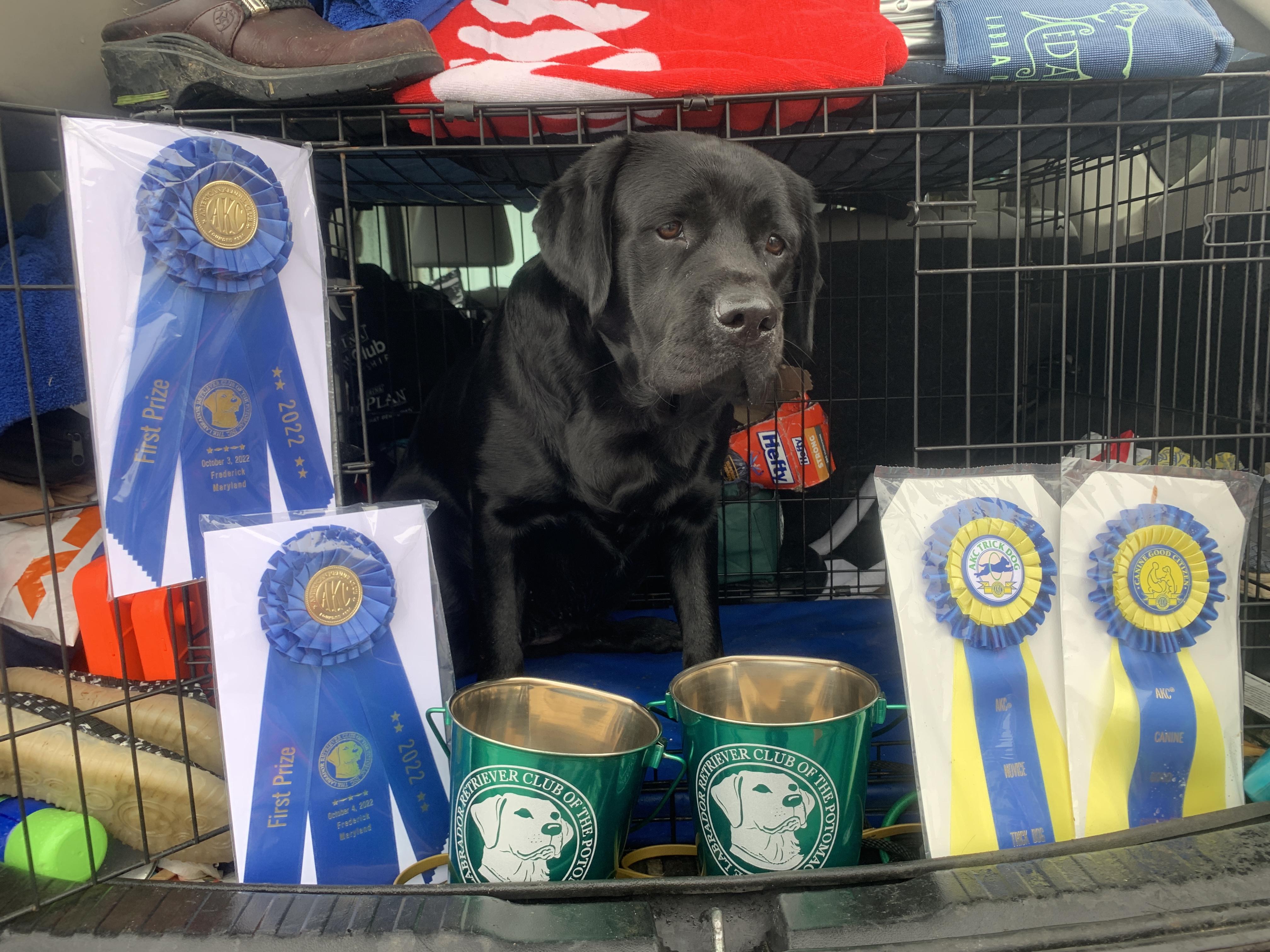 Zephyr has her Canine Good Citizen and Trick Dog Novice titles as well as winning both of her classes at the Labrador Retriever Club of the Potomac Fall Specialties. Both of her parents are AKC champions.