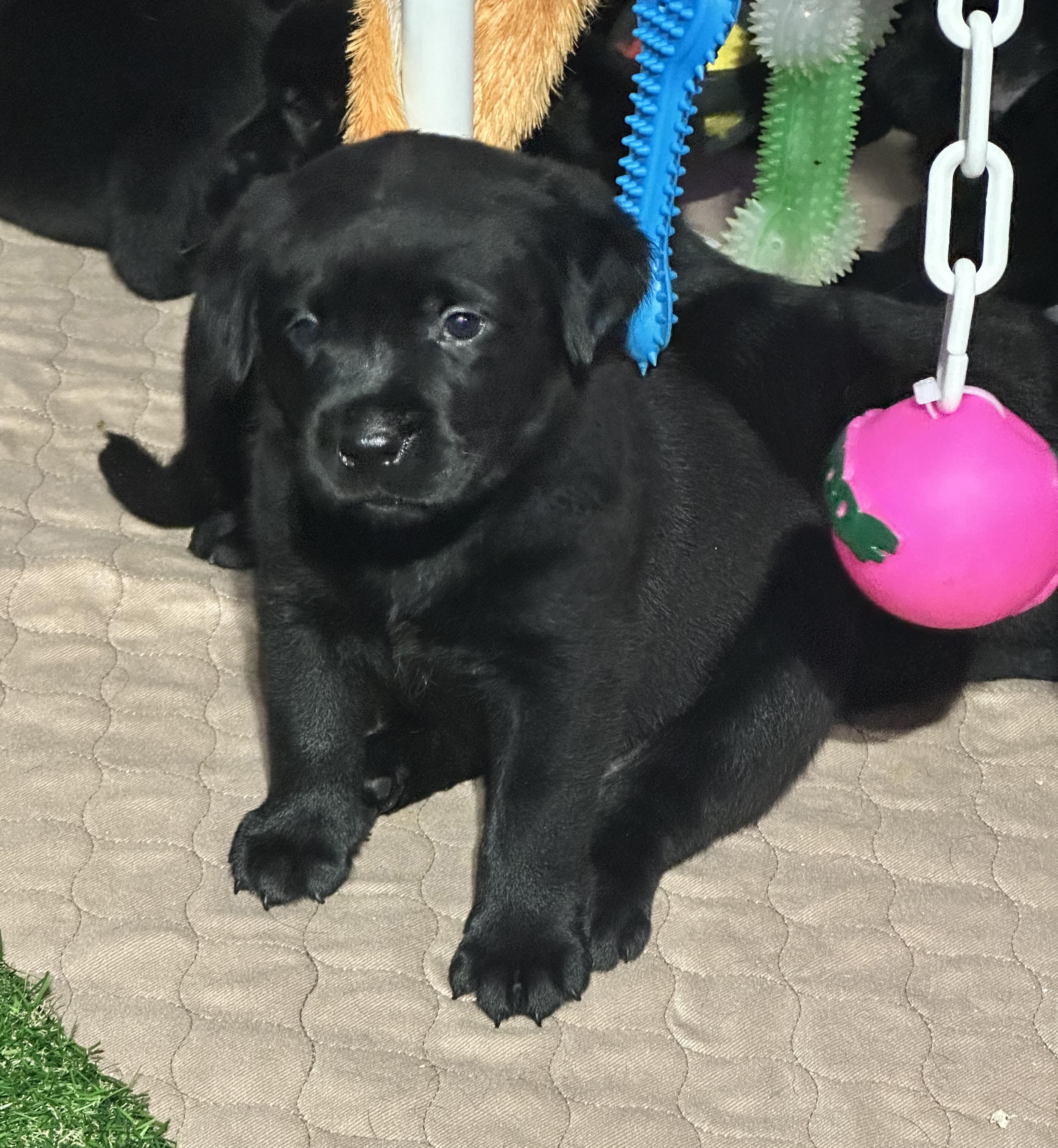 Our puppies include black and chocolate. Colors will vary depending on the parent dogs.