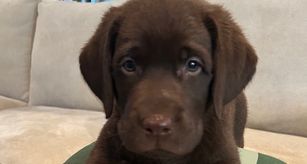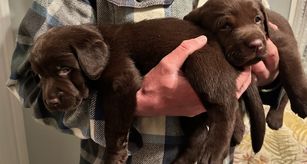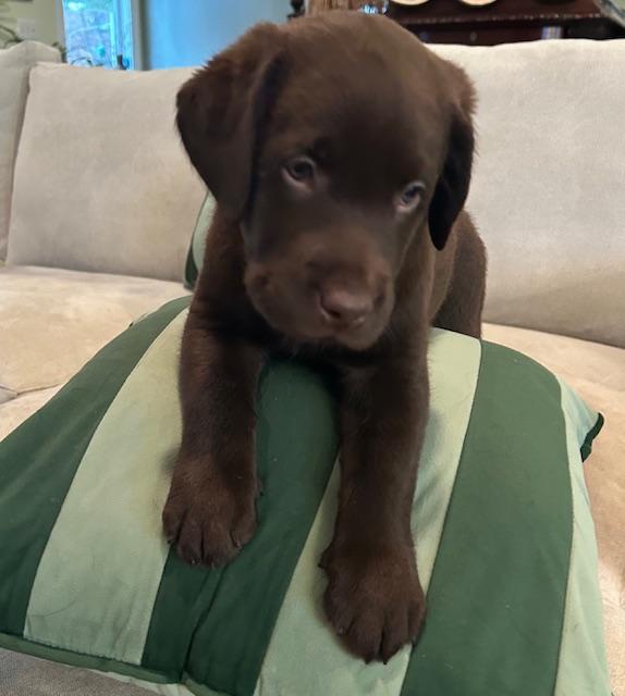 Our puppies are chocolate. Colors will vary depending on the parent dogs.