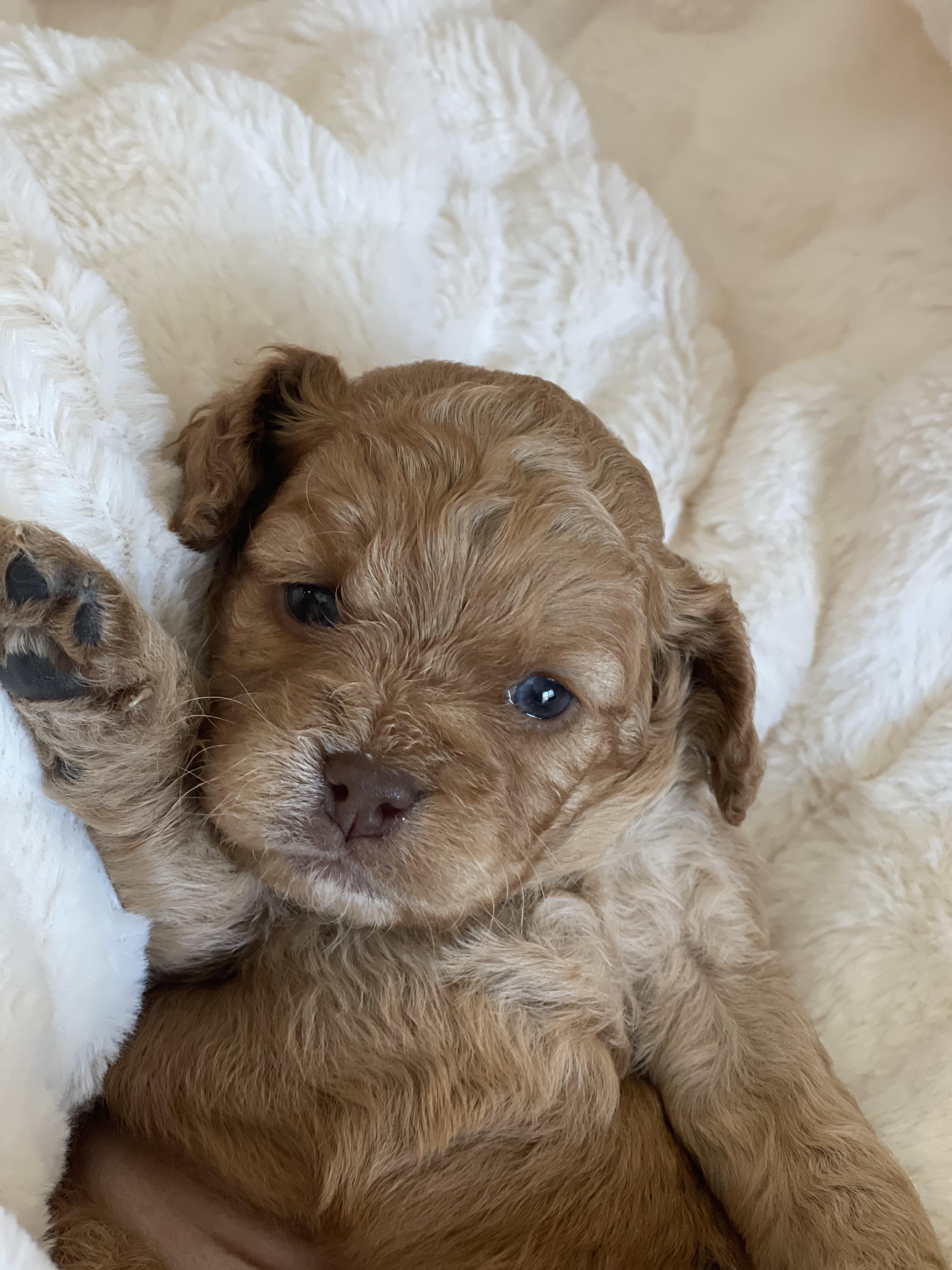 Cayenne is a female Cockapoo. Carefully selected as a great representative of her breed, Andrea decided to make her part of their program. Andrea has passed Good Dog’s screening process, which involved a review of their breeding practices, environment, and the mental and physical health of their dogs.