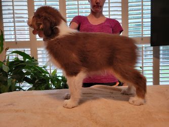is a female Australian Shepherd. Carefully selected as a great representative of her breed, Sean decided to make her part of their program. Sean has passed Good Dog’s screening process, which involved a review of their breeding practices, environment, and the mental and physical health of their dogs.
