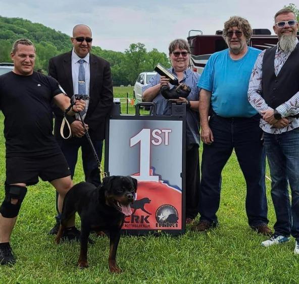 I'm Dominique W., the breeder behind CedarBluff Rottweilers located in Uniontown, AL. I’m a code of ethic breeder. I’ve crafted my own line. I’m 7 generations in. I started competing in the schutzhund sport (obedience competition) to prove the quality of our dogs. We are lifelong dog enthusiasts, and we’re excited to share our passion and purpose with others through our breeding program. When we got our first dog, we were instantly in love. Since then, we’ve made it our mission to bring happy, healthy puppies into the lives of other families!