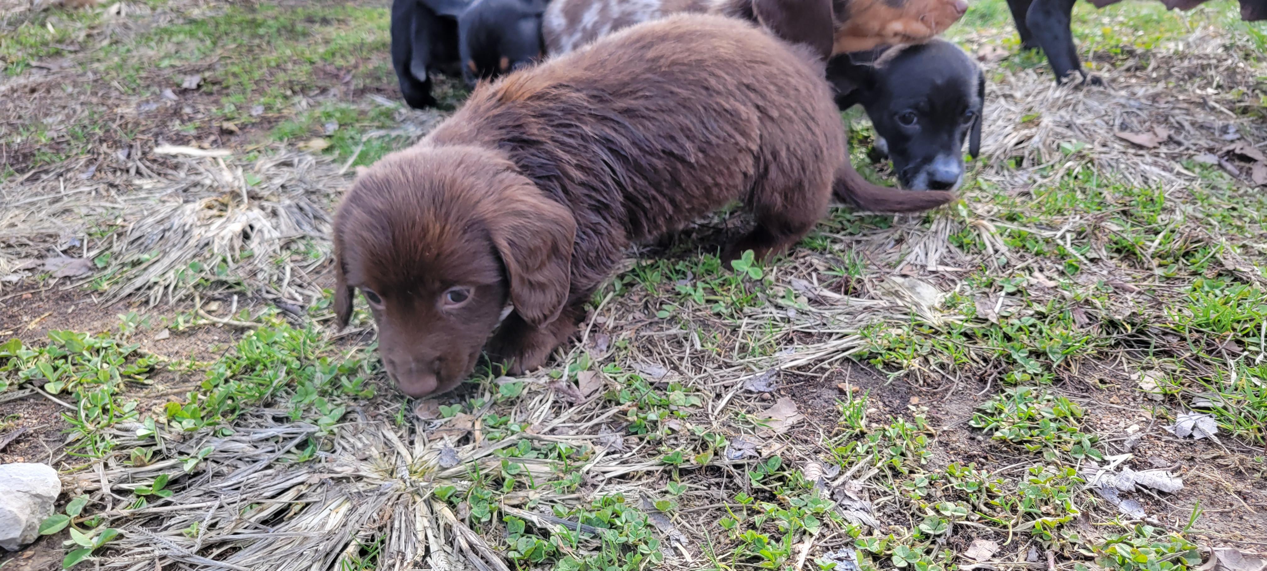 Our puppies include piebald, black, chocolate, chocolate and tan, and black and tan. Colors will vary depending on the parent dogs.