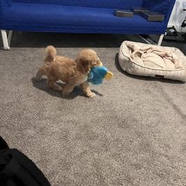 Emily provided an incredible experience when we bought our dog. The breeder really can make or break your dog's entire life, and the effort that Emily puts into her animals is reflected in the quality of our puppy. We bought Rosie about six months ago, and she is by far the healthiest puppy I've ever met (I've raised six puppies personally). She came to us without any parasites or typical puppy maladies, and that allowed her true personality to shine through from the beginning. Emily was informed and communicative, and (most importantly) she really cares about all of the dogs that pass through her care. I wanted to look for a breeder that tracked their progeny, so they would be able to make predictions about how future litters would turn out. Our vet told us that Rosie would end up being almost 50 pounds, and when I told Emily, she said, "Maybe, but I've never had a litter from these parents exceed 35." Rosie is now almost fully grown and is about 31 pounds. I have been very pleased with how Emily keeps up with all her litters. She's even sent me pictures of Rosie's father to show how much they look like each other now that Rosie is bigger. Rosie is a picture-perfect goldendoodle, and she has met every standard that Emily provided. We're so happy we went with Emily--we will recommend her to anyone looking for a puppy!