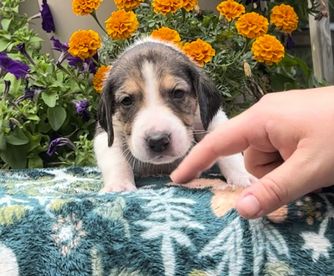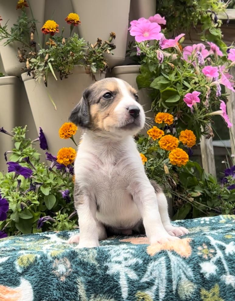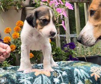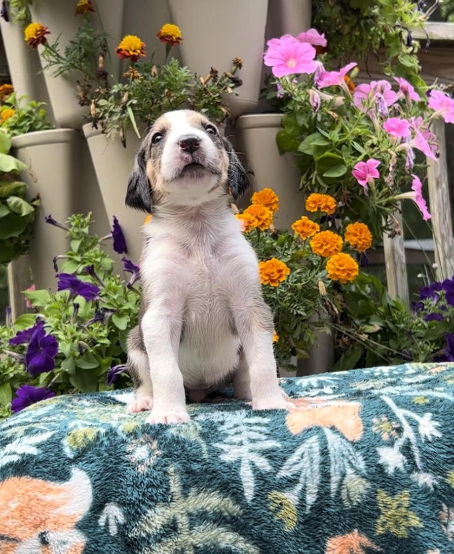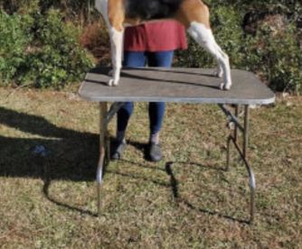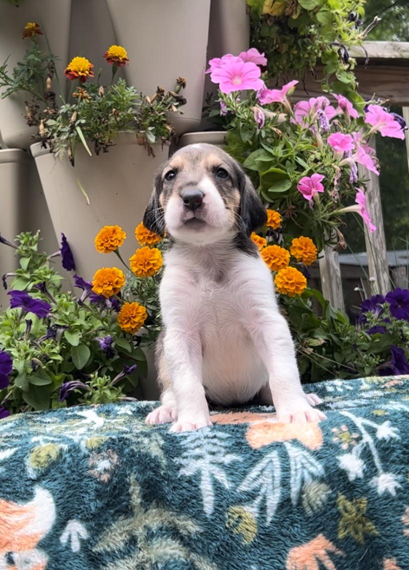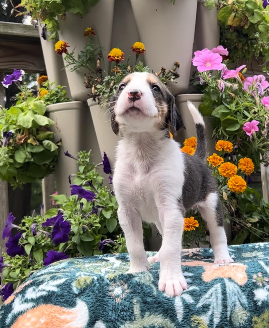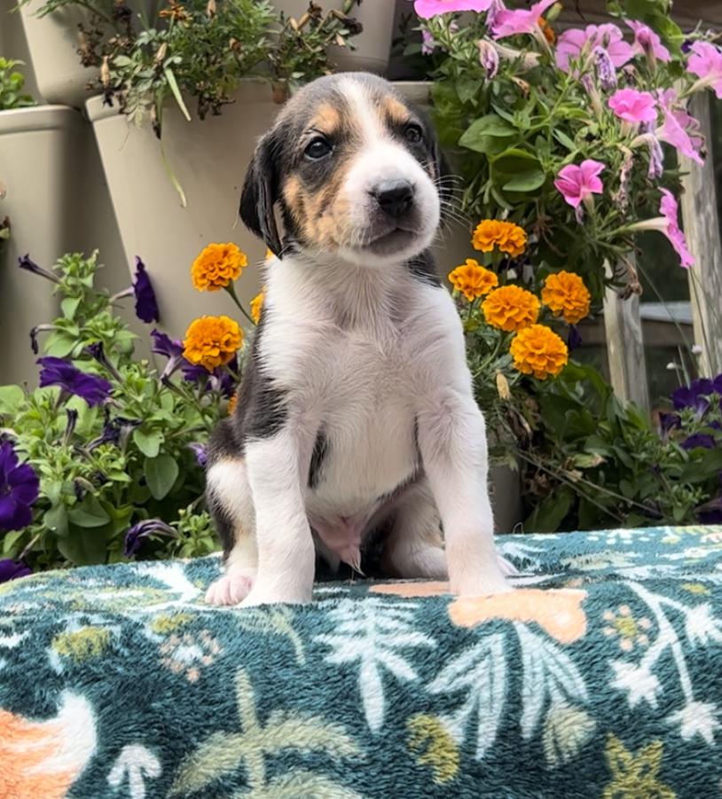 Dot Dot is a female American Foxhound. Carefully selected as a great representative of her breed, Aimee decided to make her part of their program. Aimee has passed Good Dog’s screening process, which involved a review of their breeding practices, environment, and the mental and physical health of their dogs.