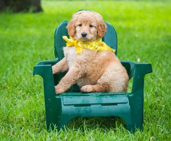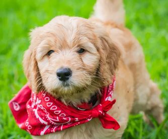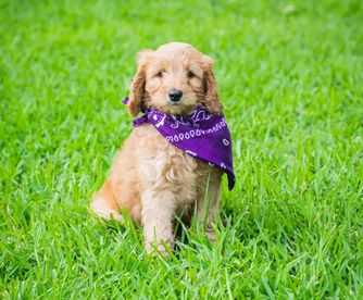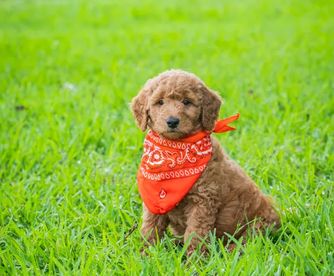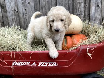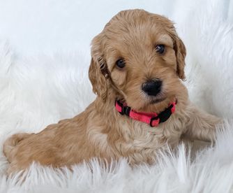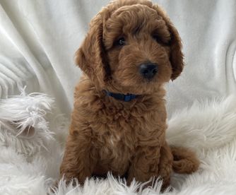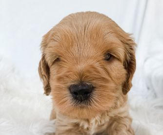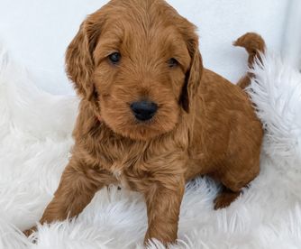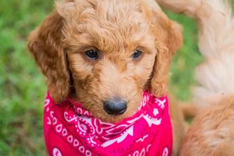 Our Goldendoodle puppies include apricot and red. Colors will vary depending on the parent dogs.