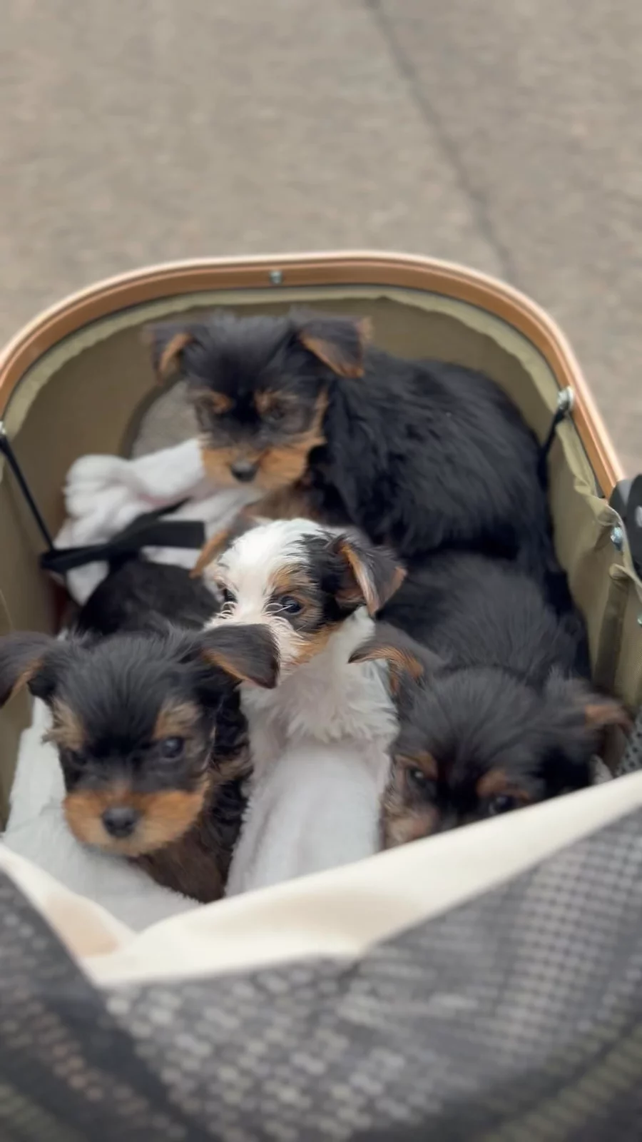 Getting these babies out for some fresh air and new sights 🐾 early socialization is everything—and they handled their first stroller ride like pros 🤍