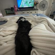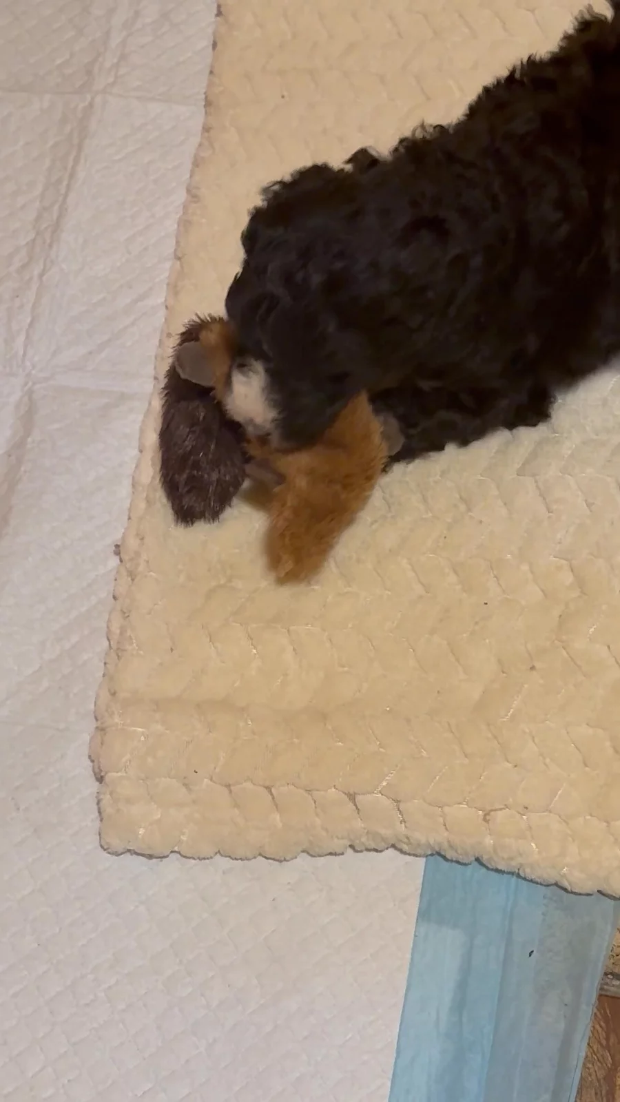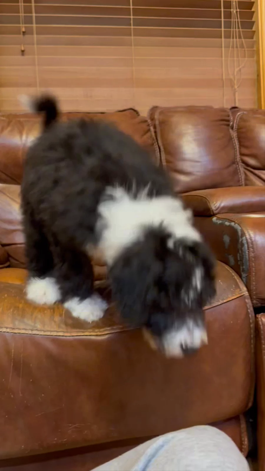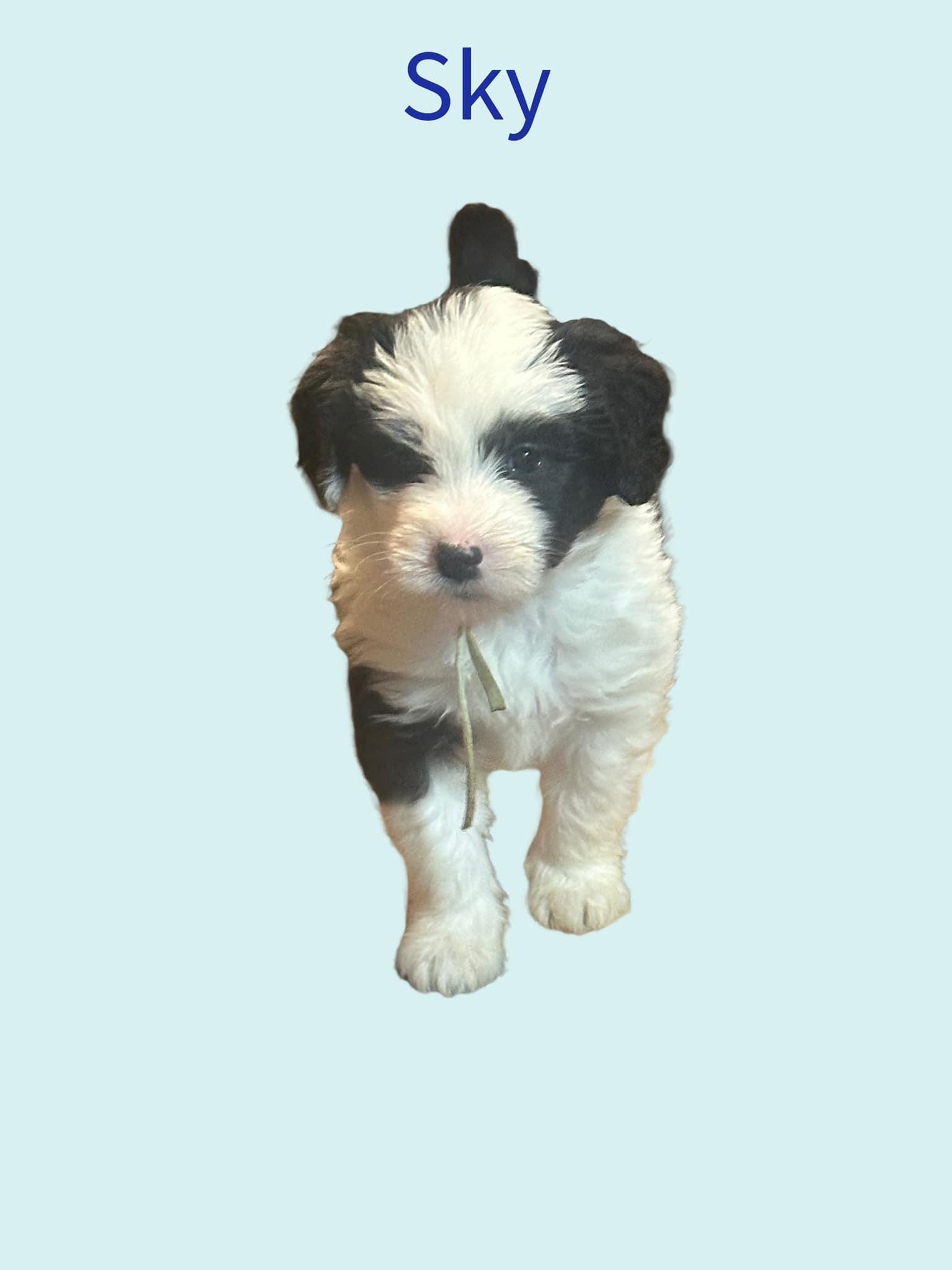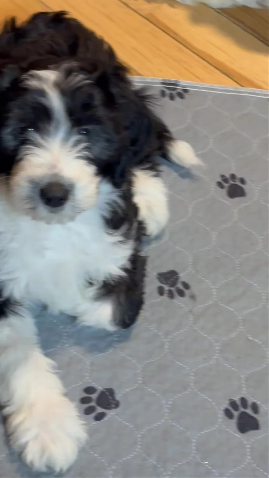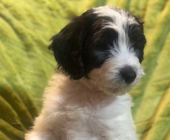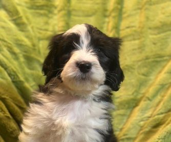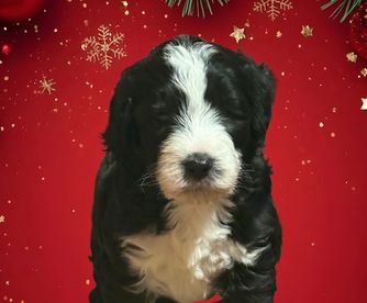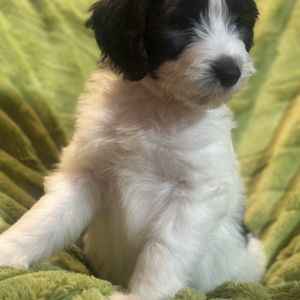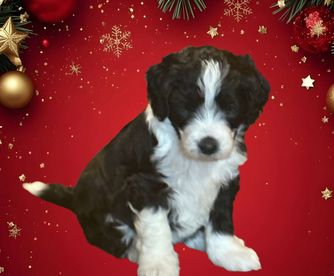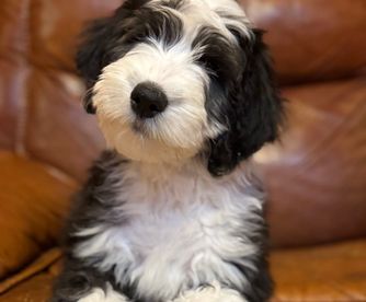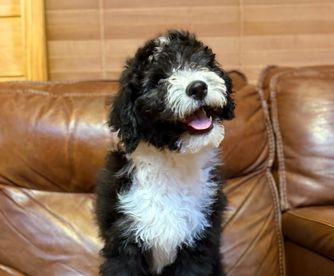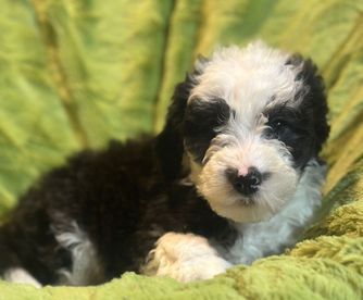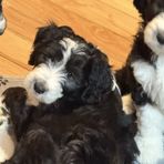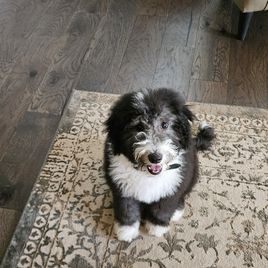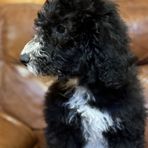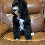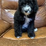 Tate has been DNA and health tested and have OFA certifications for hips, elbows, patellas, and cardiac. My dogs are hand raised inside my home with more love and attention imaginable....never in a kennel. All puppies will be vet checked and up to date on all vaccinations upon delivery. Tate is a beautiful very loyal and loving Mini Sheepadoodle. He is a happy boy who loves everyone. He is very sweet and loves attention.