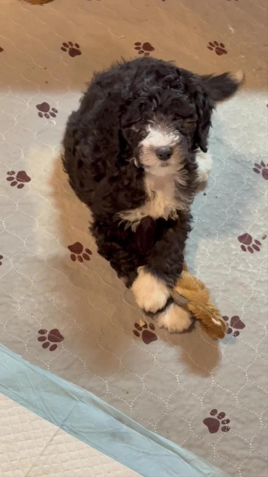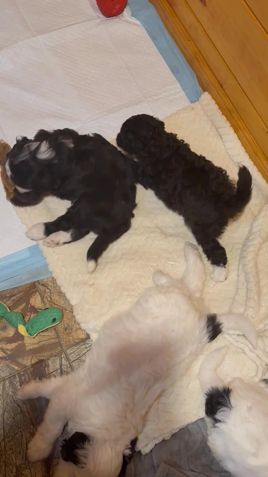 I have loved dogs my entire life and been fortunate enough to live on a small farm. We raised Great Pyrenees for several years, and then Newfoundlands. A close friend was raising doodles and introduced me to sheepadoodles and she mentored me in my first litter in 2021. Trudy will be retired after this current litter. It remains to be seen if I purchase another female. She is perfection and I can't imagine finding another of her quality.
