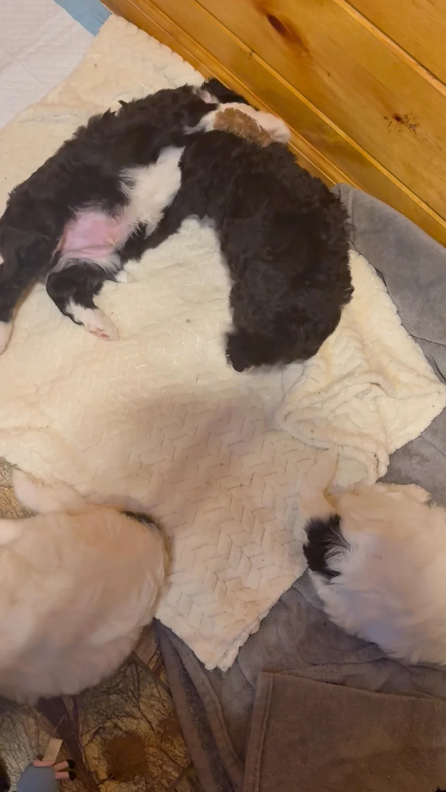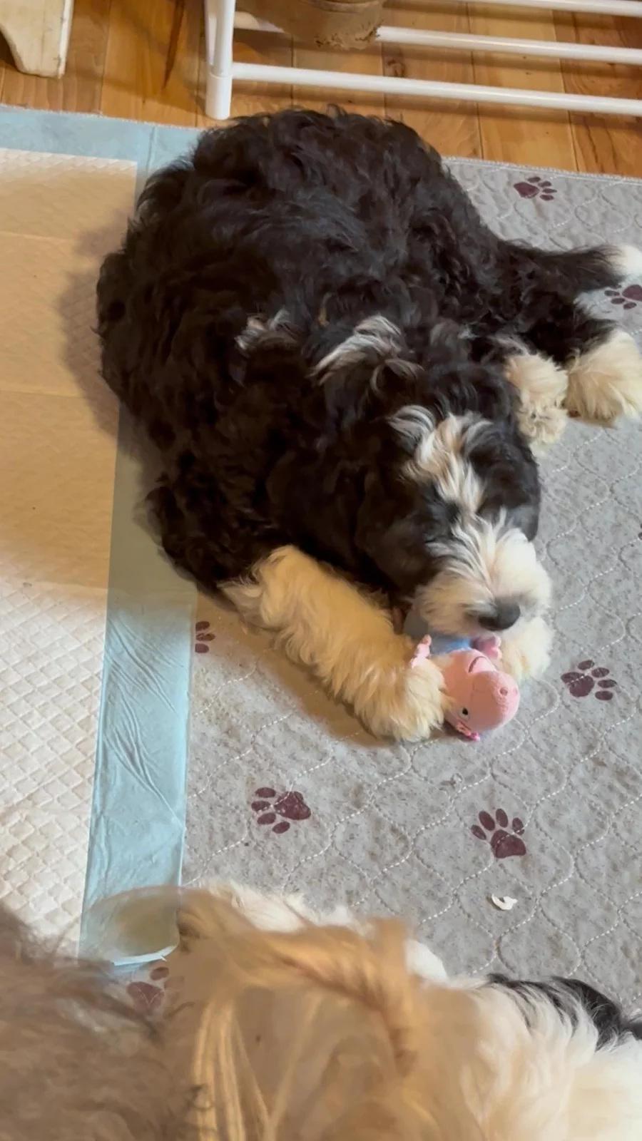 Trudy and Tate have both been DNA and health tested and have OFA certifications for hips, elbows, patellas, and cardiac. My dogs are hand raised inside my home with more love and attention imaginable....never in a kennel. All puppies will be vet checked and up to date on all vaccinations upon delivery. Trudy is perfection in a Sheepadoodle. She is smart, calm healthy, and beautiful. She has been health and genetic tested, passing with flying colors. She is a fantastic Mom to her babies and although we had not planned this litter, here we are.
