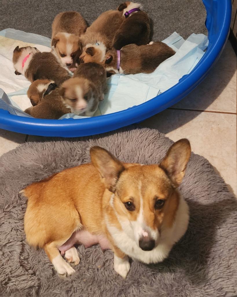 Myra is a full fluff triple clear AKC corgi with her tail. She is my little 🦊 foxy momma.