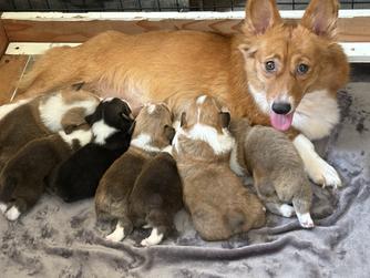 We only keep AKC health tested Corgis here and perform Veterinary surgical inseminations. It takes all the guess work out of the breeding program. The only guessing game we play is; how many puppies will we have? It looks like a success this year because we have 20 spring Puppies!