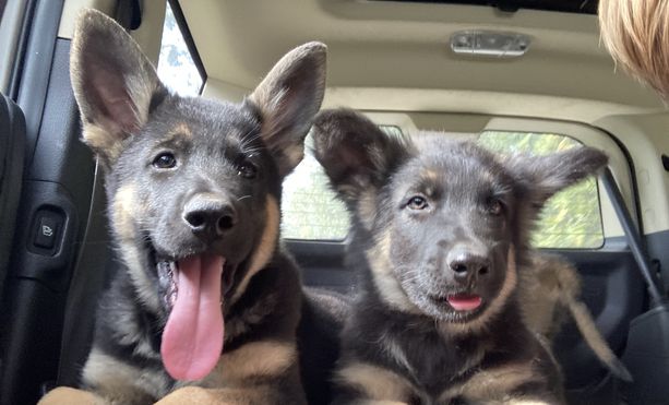 We breed low to medium drive shepherds suitable for families or service work. You will see in my videos and pictures, we take our dogs everywhere, socialize, and train them to be safe and adaptable.