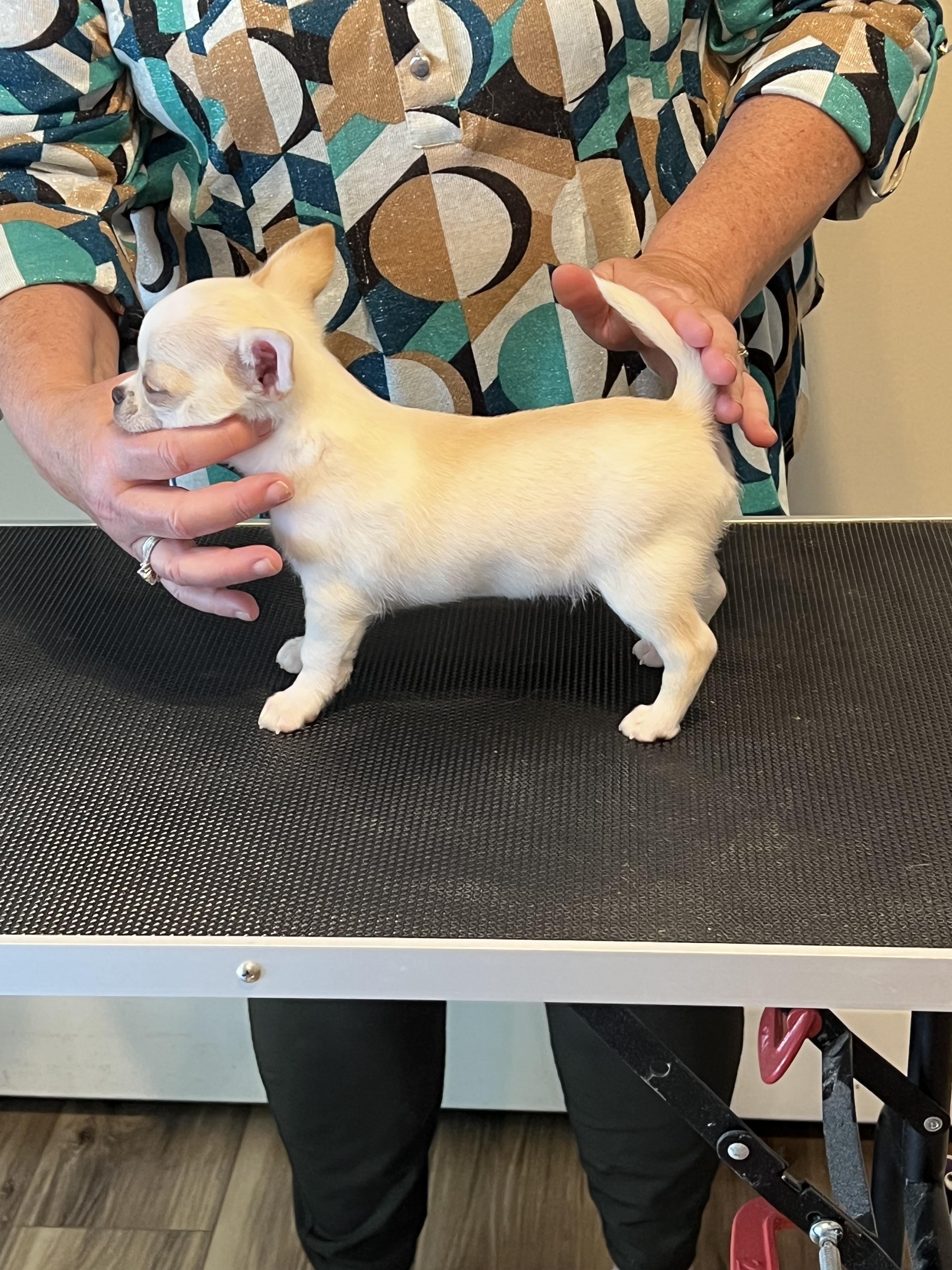 Ozzy is a male Chihuahua. Carefully selected as a great representative of his breed, Cheryl decided to make him part of their program. Cheryl has passed Good Dog’s screening process, which involved a review of their breeding practices, environment, and the mental and physical health of their dogs.