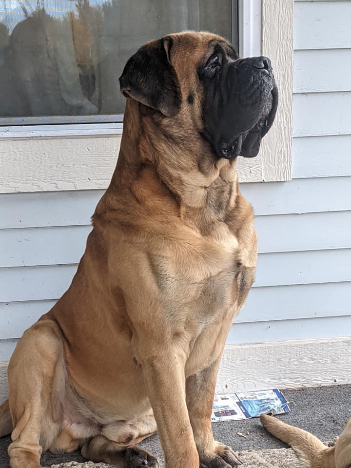 “The price includes all Mastiff recommended testing of the parents as well as socialization and temperament testing of all puppies. They learn to walk or run on all kinds of ground cover and hear all types of sounds in a normal home. Each is socialized with their pack but also, my husband and I individually. It covers deworming, the first round of vaccinations, and a home health visit by my Vet. They are typically housebroken prior to going to their forever homes. I am very particular about who gets my babies and I am here for their new families 24/7. My puppy packet outlines everything a new family would need to know about Masitffs and my contract is for the betterment of the puppies' life. I love nothing more than to talk about my babies and their lineage. I do not differentiate between "show" and "pet" quality. Any of my babies can be shown and become Champions or I'm not breeding for the betterment of the breed. The deposit is held until the pups are born after proper screening of prospective homes. If there are not enough pups in the litter or, they don't get pregnant and the new family doesn't want to wait for another litter, the deposit will be refunded. I do not microchip the puppies but contractually, they must be microchipped by 9 months old. The reason for this is Mastiffs grow so quickly, the microchip can travel in their bodies. Prior to taking a deposit, I have a lengthy conversation with any prospective family.”