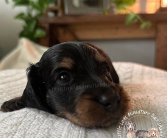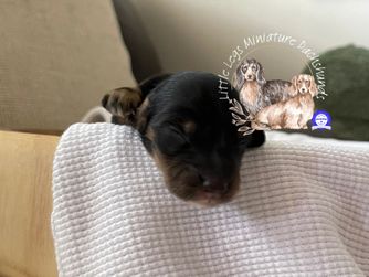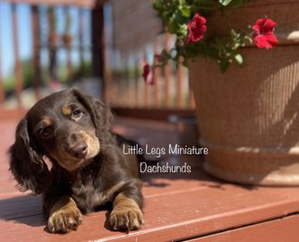 I am beyond pleased with my experience with Little Legs Miniature Dachshunds. Emily kept me informed with daily updates and pictures of our precious Twix. She was communicative and helpful with any questions, comments, or concerns I had. Twix is the most well tempered puppy and he is so smart, he needed no adjustment period. I know that is because of Emily who loves these babies as if they are hers forever. She pours so much love and affection into them and it shows!