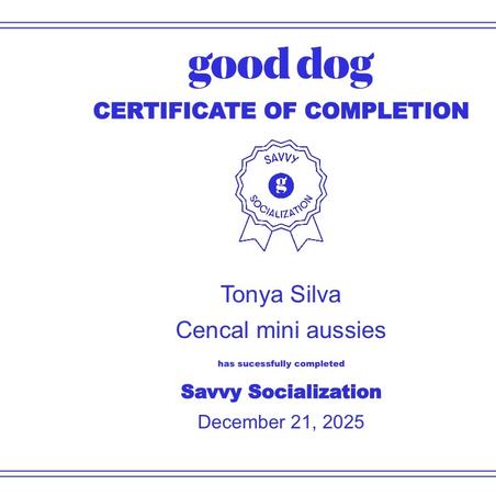 Tonya was always there when I questions and wanted pictures. She seemed to be in touch with the breed. Great to work with all the way through the process. I would recommend Cen Cal Aussies to anyone. Great breed.