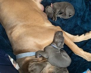 Our puppies include fawn, blue, harlequin, and black. Colors will vary depending on the parent dogs.