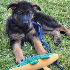 Central Coast German Shepherds breeders is a great choice for finding your new fur baby. Julie Bennett is very knowledgeable, professional, and caring breeder. Our new puppy is adjusting to our home, and has not exhibited any separation anxiety, or fear of any loud noises. He is very friendly to other dogs, people and children. We are socializing him to ensure he stays a well behaved and healthy member of the family. We've changed his name to Boomer Reaux, but we just call him Boomer. Our thanks go out to Julie and Central Coast German Shepherd breeders.